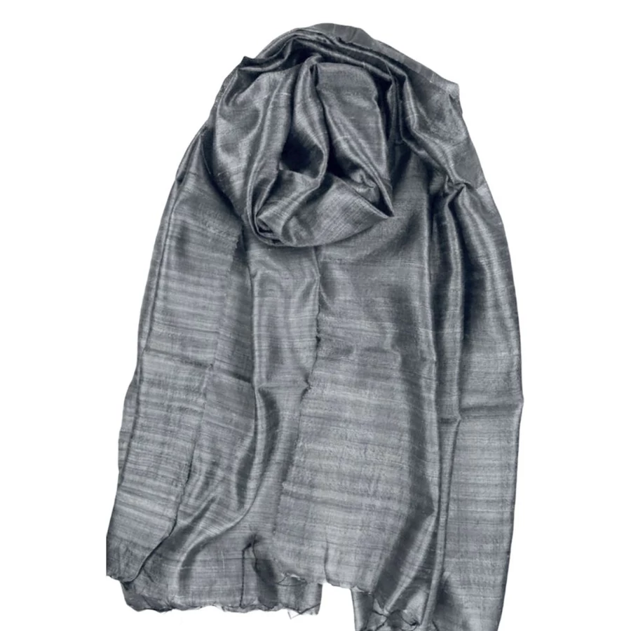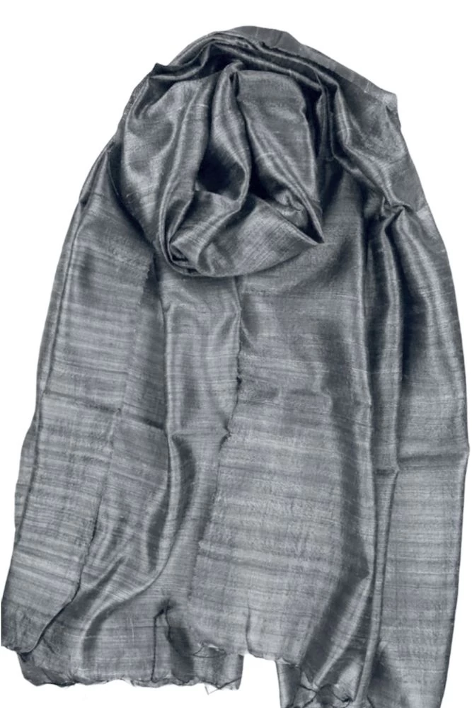 100% valódi hernyóselyem kvarcszürke színű nyers selyem sál