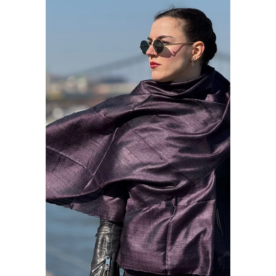 100% valódi hernyóselyem padlizsán színű nyers selyem sál 70x180cm