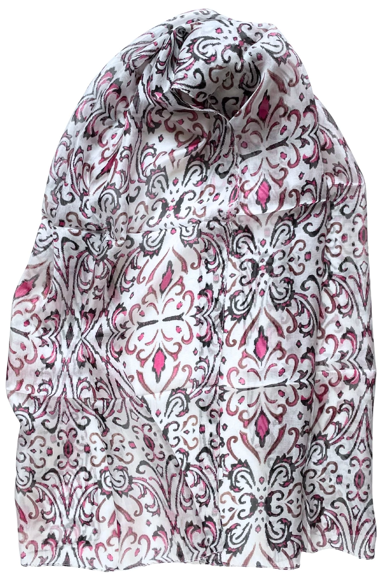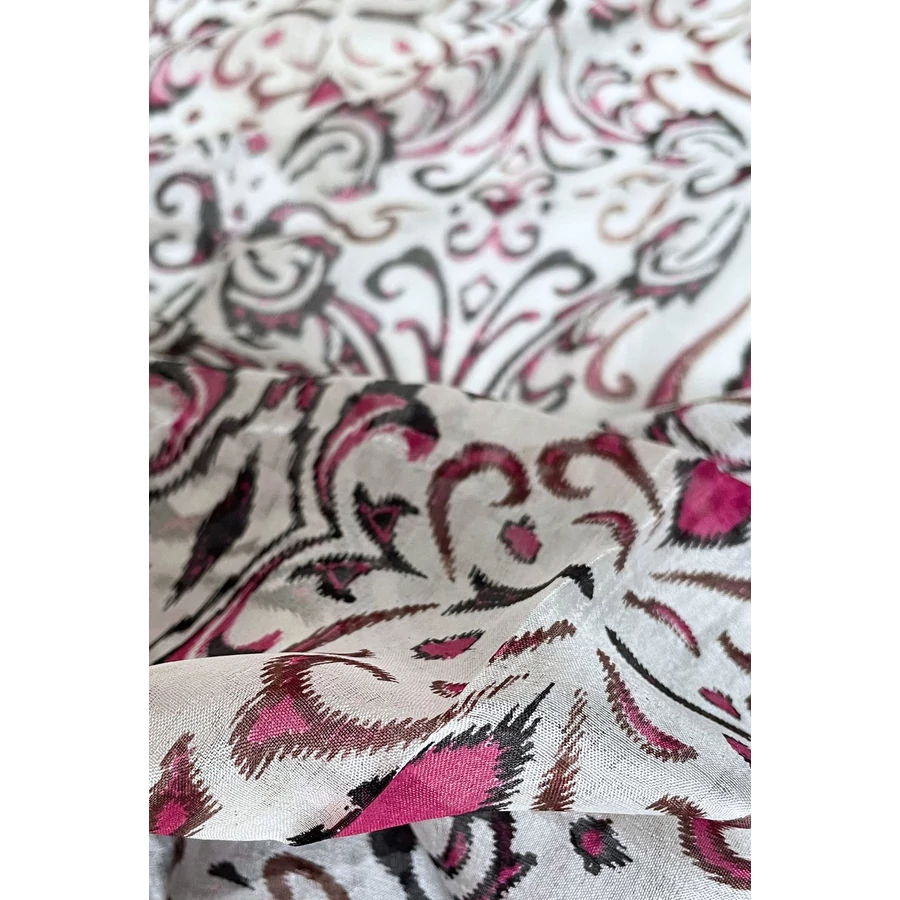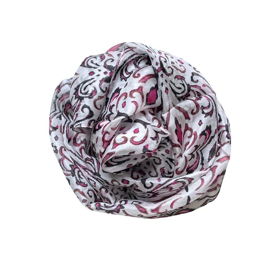 • 100% valódi hernyóselyem habfehér alapon bársonyfekete és görögbíbor mintás