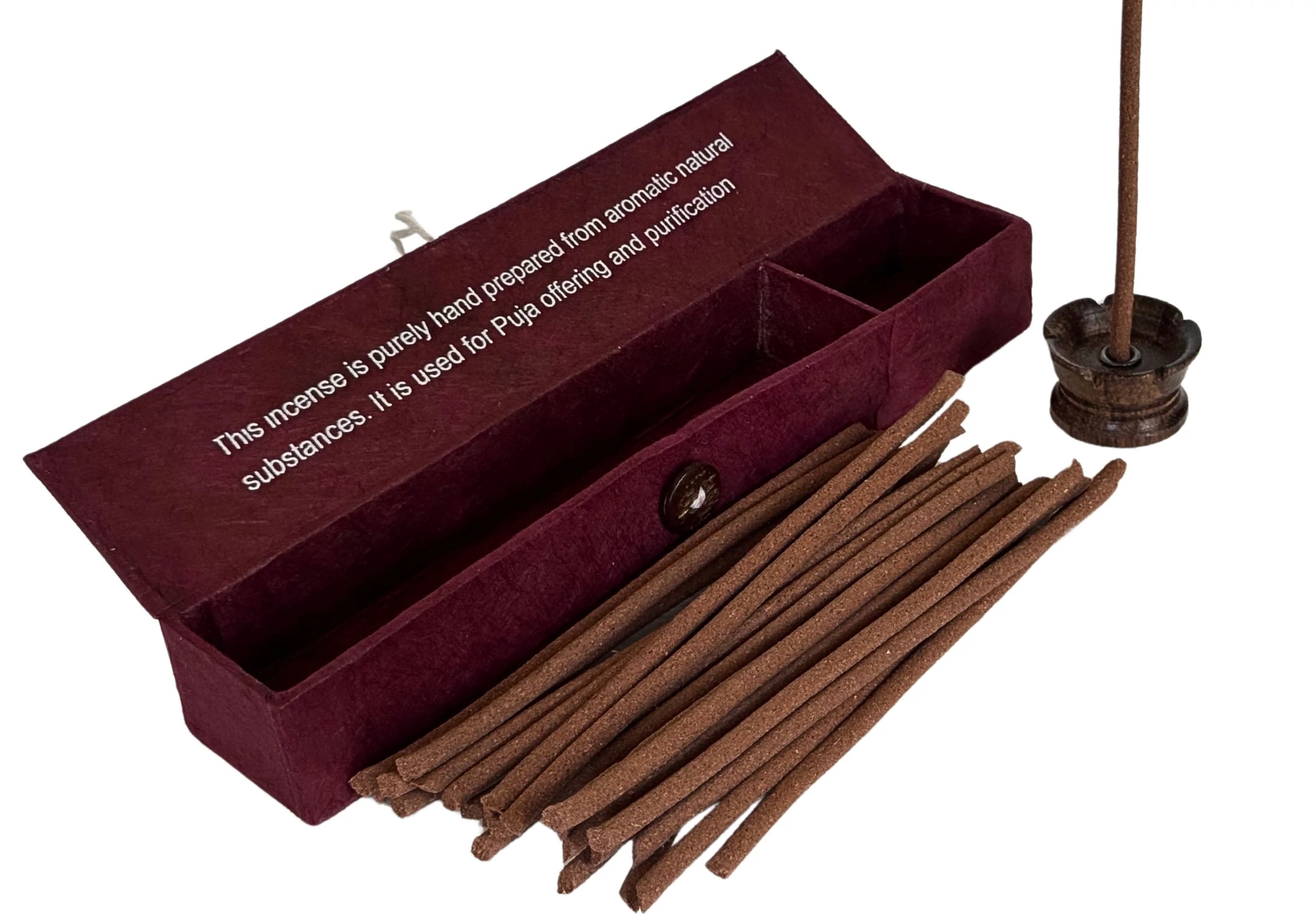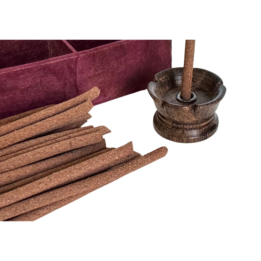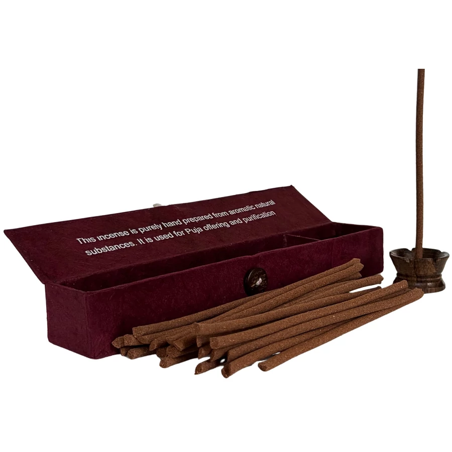 A füstölő egyik végét illeszd bele a füstölőtartó lyukába, a másik végét gyújtsd meg, és amikor lángolni kezd, legyezd el a lángot a kezeddel - hagyd, hogy a parázs végig izzon, és éld át a mennyei birodalmak illatának élményét. Kiváló meditációhoz, relaxációhoz, jógához, hétköznapi hangulatjavításhoz.