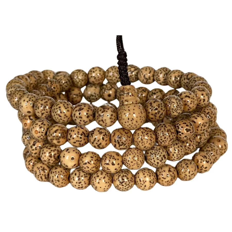 Rendet, letisztultságot sugall. 108 egyforma, szabályos gömb alakú szem alkotja, precízen fúrva, tökéletesen elrendezve – a figyelem és gondosság kézzelfogható formája. A szemeket erős malazsinór fogja össze, és a füzért tradícionális tibeti csomó zárja le, stabilan és esztétikusan.