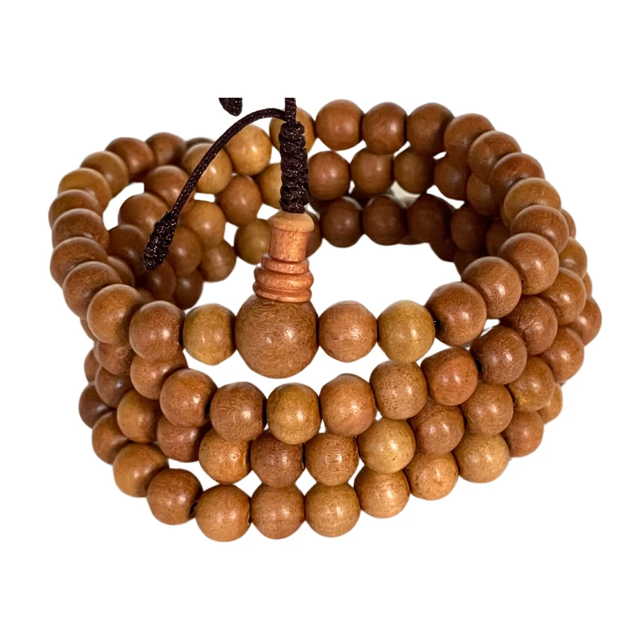 A szantálfa nem véletlenül lett az egyik legkedveltebb mala alapanyag Ázsiában. Illata nem tolakodó, mégis azonnal felismerhető – sokak szerint segíti a tudatot elcsendesedni, segít a jelenben lenni. A keleti hagyományokban a szantált a tisztító, nyugtató minősége miatt használják meditációhoz és szertartásokhoz, de sokan egyszerűen csak azért szeretik, mert kellemes kézbe venni.