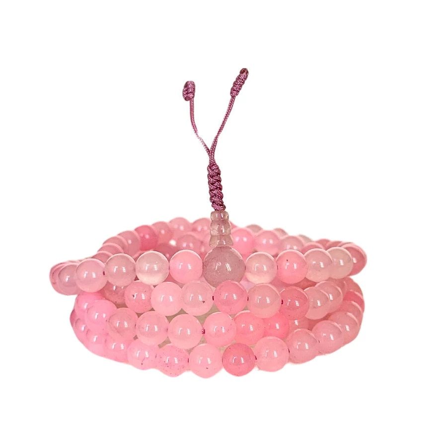Vannak napok, amikor a csend az, ami tart. Ez a mala ilyen napokra készült. Rózsakvarcból. Finom rózsaszínje nem csak a szemnek szép – a léleknek is szól.