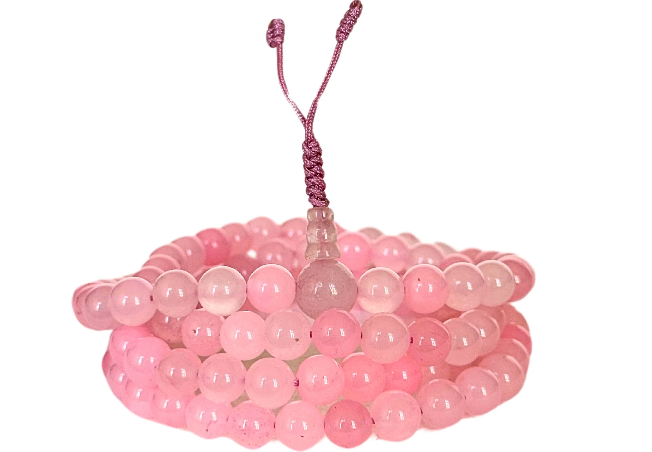 Rózsakvarc mala 108 szemmel – 86 cm gyógyító szelídség a szívnek. Békesség, nőiesség, szeretet.