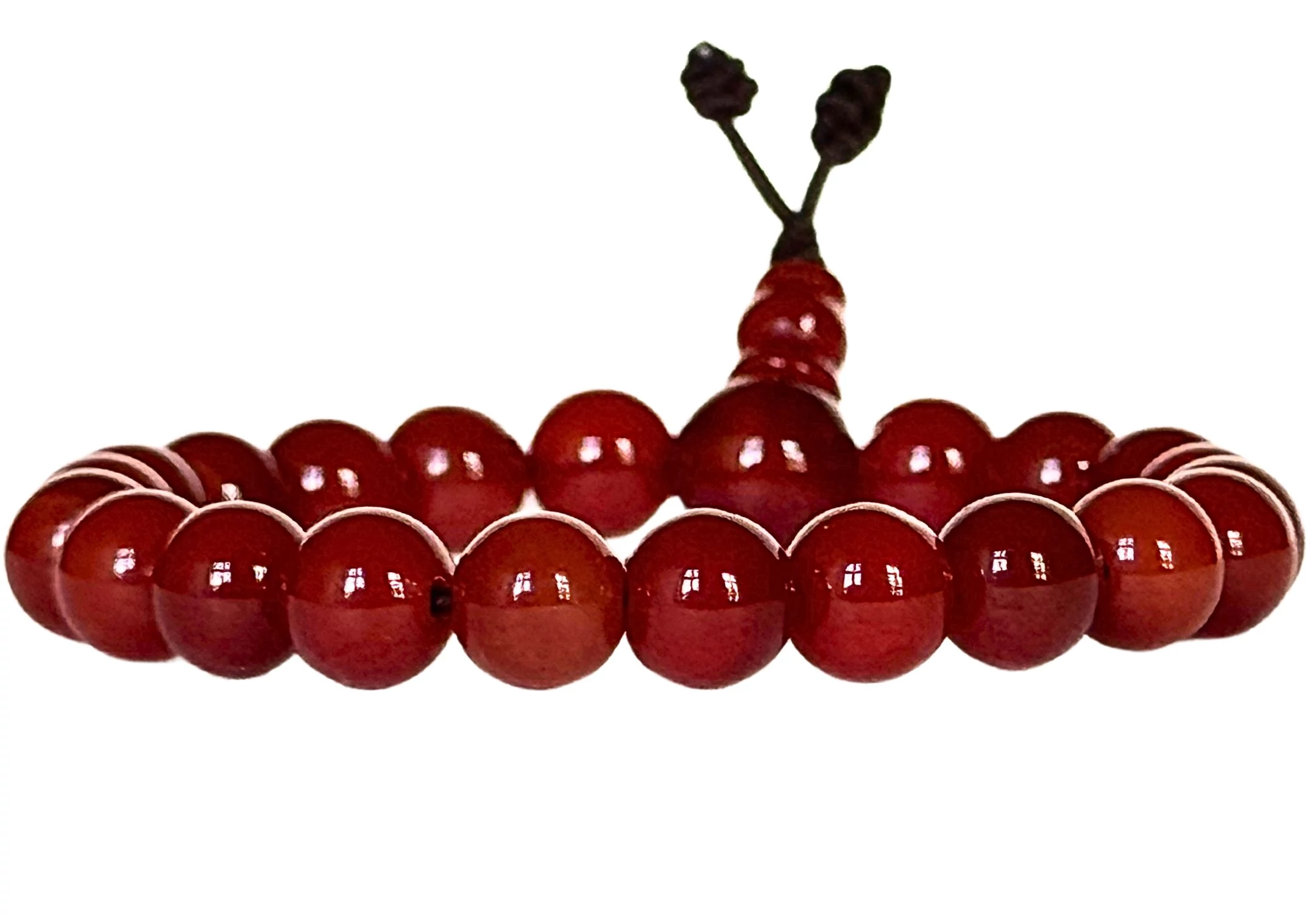 Sokan úgy tartják, hogy a karneol támogatja a cselekvést, erősíti az akaraterőt és fokozza az életerőt. Ez a mala nem csupán egy füzér – ez egy kísérő, egy kis belső tűz, amit bármikor előhívhatsz.