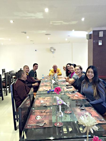 Rinpoche tanítványai munka közben a bodhgayai kolostor kávézójában: