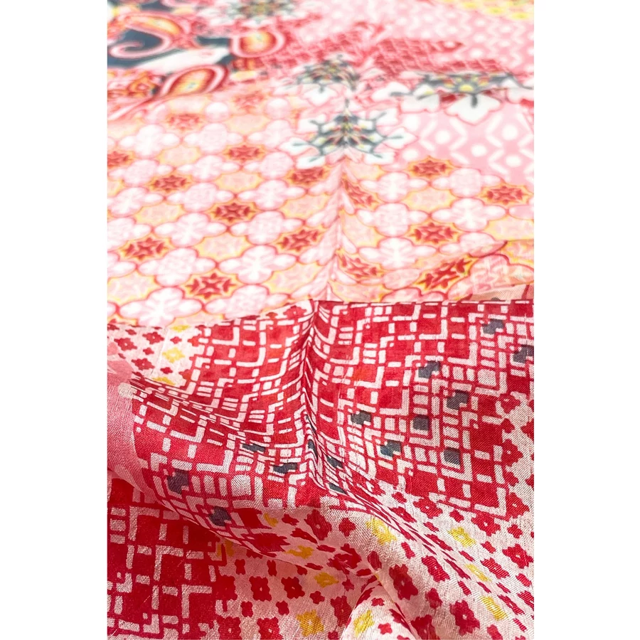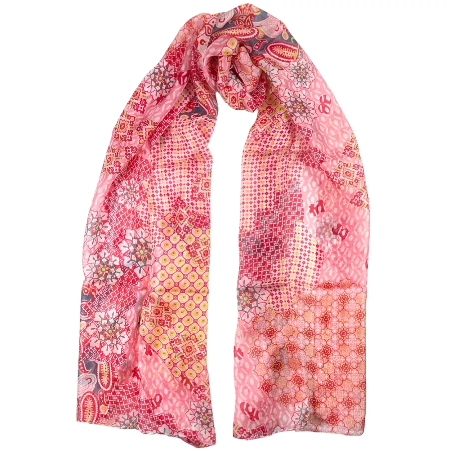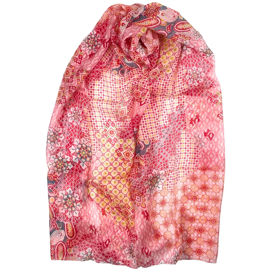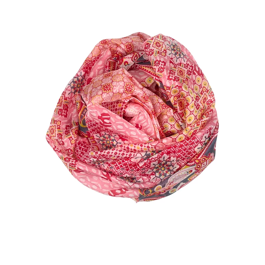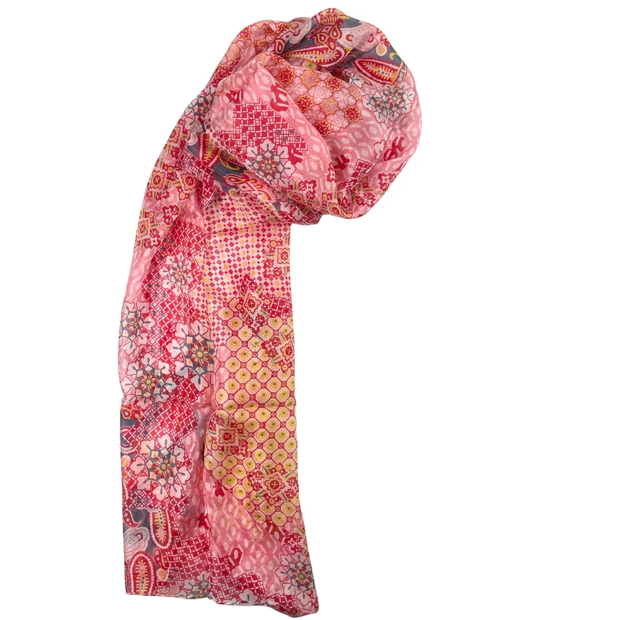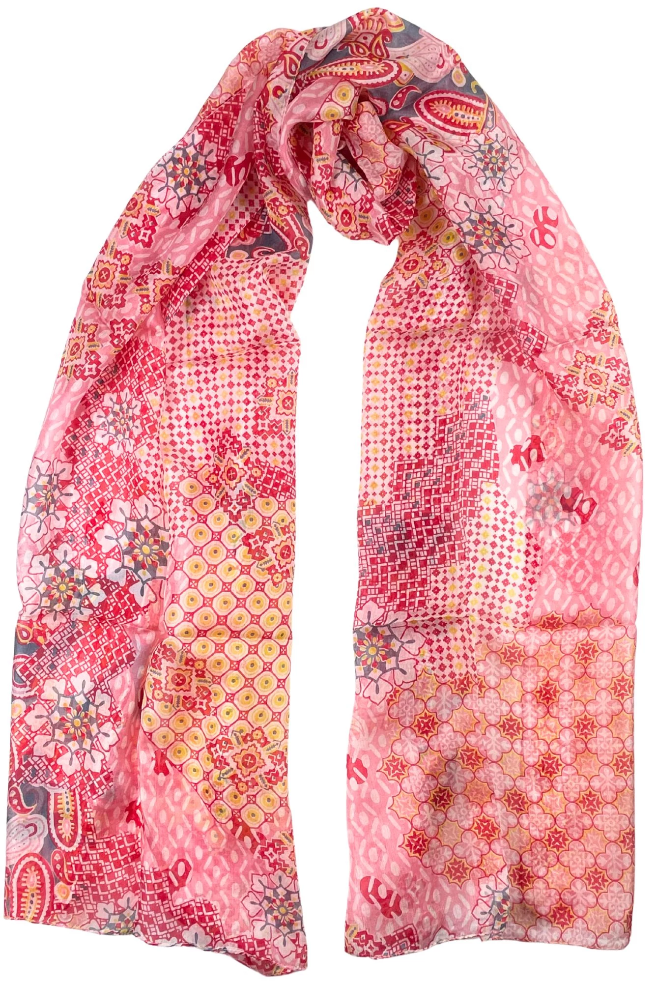 Hollandrózsaszín alapon mintás 100% valódi hernyóselyem sál 50x180 cm